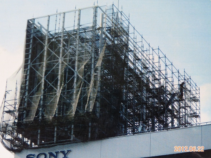 仙台駅東口のソニービル屋上の看板撤去工事です。
